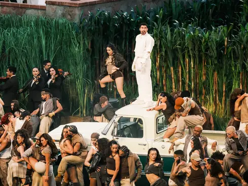 Şovun “sahne bir mahalleye dönüştü” hissi, bir temsil stratejisi olarak çok güçlü: Latinlik burada egzotik bir tema değil, ev diye kurulan güvenli bir alan; kalabalık, kolektif bir hareket ve dekor değil de hikayenin ana unsuru olan figüranlar… Ve sonra bir anda büyük şovun kalbine, bütün o gösteri havasını bozan, hiçbir şey sanki kurgu değilmiş gibi tam ortaya yerleşen gerçek bir düğün…